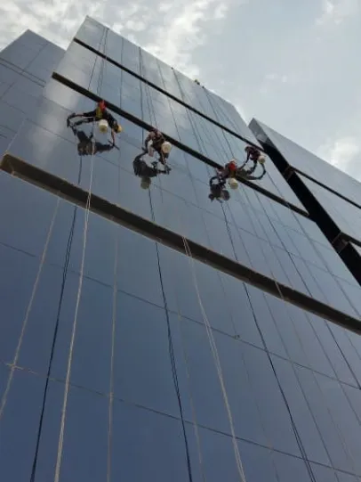 نقدم خدمات تنظيف الواجهات الزجاجية الخارجية للمباني باستخدام أدوات التسلق والمعدات المتخصصة لضمان لمعان ونظافة كاملة.