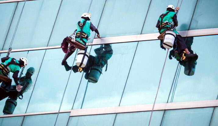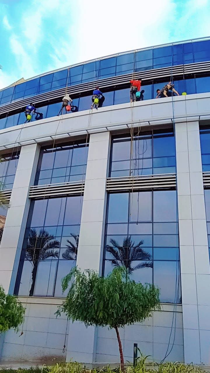 نقدم خدمات تنظيف الواجهات الزجاجية الخارجية للمباني باستخدام أدوات التسلق والمعدات المتخصصة لضمان لمعان ونظافة كاملة.